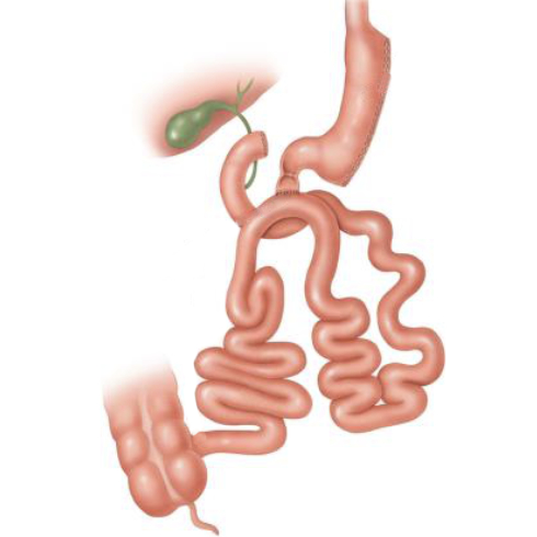 El bypass gástrico en Y de Roux es una cirugía para bajar de peso en obesidad grave. Hacemos una bolsita pequeña en la parte superior del estómago, como del tamaño de un huevo, y la conectamos directo a una parte baja del intestino delgado, saltando el resto del estómago y duodeno. Así comes menos porque te llenas rápido, y absorbes menos calorías y grasas. Reduce el hambre y ayuda con diabetes. Se hace por laparoscopía, con recuperación rápida